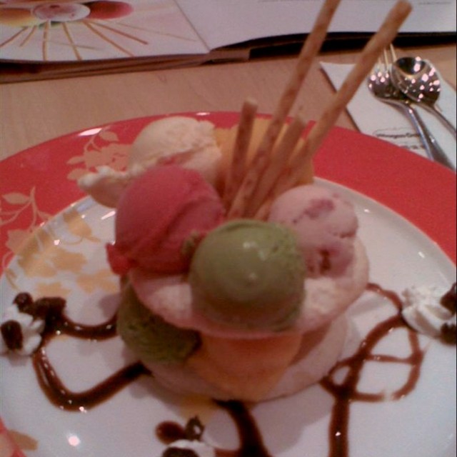 地段那是相当的赞,无敌江景,一年四季人都是扑进扑出,服务么基本没有服务可言的,天气好的时候坐在外面还可以,天冷就不行了!冰淇淋火锅最适合三四个人一道吃了,比单球划算。口味有曲奇,比利时巧克力和草莓等。味道还是那么浓郁纯正,冰火两重天的享受。一个人么吃吃抹茶单球也不错。…查看更多