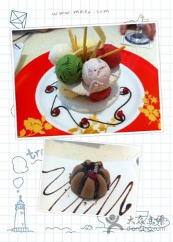 哈根达斯家的东西总体还是好吃的 连锁还是质量比较有保证的 这次点了一个80多的套餐 有10个球 虽然小了很多 但是有5种口味 2个人吃正正好好而且垫冰激凌的饼干 超级好吃啊 甜度就是我的TYPE啊饼干都给我吃掉了 嗲冰激凌 我还是最喜欢吃抹茶和淡粉红色 放点草莓碎的2款 全红的那个太酸了朋友还点一个巧克力慕斯蛋糕 蛮好次的 但是我个人对慕斯都没什么感觉的现在就等冬天吃巧克力火锅了 查看更多