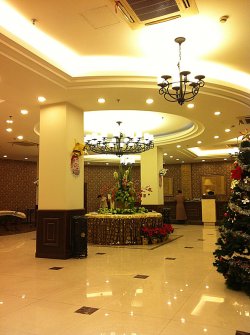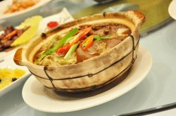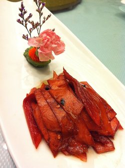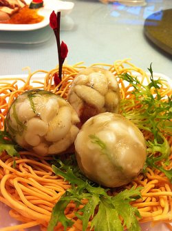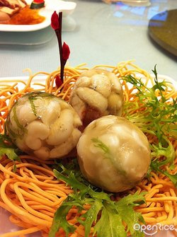 气派的酒店 stellayxj等级42012-09-1327 浏览 关注 酒店的外观还是蛮气派的。四层楼,夜晚时每层楼大大的窗户向外透着明亮的灯光,有些灯火辉煌的感觉。一楼大堂较大,服务台也大。有些欧式风格,休息座椅也是大大的欧式软沙发。一楼、二楼都有散座,也可以办宴席。三楼、四楼是包房。有二部电梯上下。吃饭是在三楼。包房全在一边。房较大,很简洁,吊灯较为打眼,附单独卫生间。中间位置是甜品及汤、煲类的样品展示。对面有一面菜单墙,贴着大大的菜品相片及品名价格.一边是冷菜间,另一边是海鲜池,种类不少。还有燕鲍翅的样品。墙上也有一些黑白的欧洲著名建筑的相片。空间较为浪费的。菜式以宁波菜、舟山海鲜为主。琵琶鸭:外皮脆脆的,肉质较嫩,没有什么腥味。豆瓣酥:较为有创意,形状很可爱。小山形的碗豆泥下面衬着薯片。味道不错。凉拌蟹钳:第一次吃。小小的蟹钳,肉是生的,但滑滑的凉凉,味道很鲜。清蒸梭子蟹:火候不错,蟹肉非常鲜嫩,味道中带着一丝丝的甜味,好吃。粉丝扇贝:非常入味,扇贝较为有弹滑,蒜香味十足。炸臭豆腐:炸得很好,外酥内嫩。只是咸了点。红烧肉:浓油赤酱,肥肉肥而不腻,瘦肉有一点硬。味道酱香中带甜味。很入味,咸了点。葱油饼:煎得色泽金黄。外皮很酥,浸透了油的感觉,内里较软。很爱。总的说菜式做得还行,可是在我看来都偏咸了点。…查看更多+ 4以上食记乃用户个人意见 , 并不代表OpenRice之观点。赞好分享气派的酒店 唐岛海鲜大酒店 https://s.openrice.com/KtLT100tIe300检举 Honey丶小甜心 量很大呀!2012-09-14 回应 史努比杜其 我喜欢量大的~~~2012-09-24 回应 张贴 评分4味道4环境3服务4卫生3抵食推介美食正正正正正正正正清蒸梭子蟹,红烧肉,葱油饼,琵琶鸭用餐时段晚餐