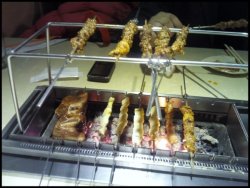 烧烤店还是很阔气的,2层满满的都是地方,去的时候是晚上,人不少都是来吃烧烤的,为了清净点我们选择去2楼的地方,位置靠里一层地方不大,二层没什么人,他们家烧烤都是高科技是生肉现烤的,哈,比较高端,并且钳子不用自己用手动,都是有一个轴来自己转,然后带动烤串翻转,调料什么的自己撒,比较有操作性,自己烤最不好的就是掌握不住也不知道啥时候才熟,因此浪费了几串,不过整体还是很不错的看着干净些还有肉串个头大点,就是价位比较贵!查看更多