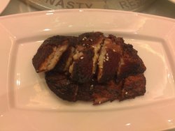 这家店的环境蛮不错的,装修的比较的大气高雅,顶上都是那种华丽的吊灯,而且还会有人来表演弹钢琴的,感觉不错。招牌嫩鸡,鸡肉的外皮比较的Q的,里面的鸡肉蛮嫩的,底下是酱汁,可以用来蘸鸡肉吃,味道蛮鲜香的。孜然牛仔骨,孜然的香味蛮浓郁的,牛仔骨的口感蛮香脆的,肉质不很嫩,但吃起来比较的有嚼劲。查看更多