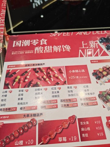 沾喜糖葫芦套盒 / 大串冰糖葫芦 / 奥利奥炒酸奶 / 小串草莓套盒 / 抹茶炒酸奶 / 醇厚朗姆酒炒酸奶