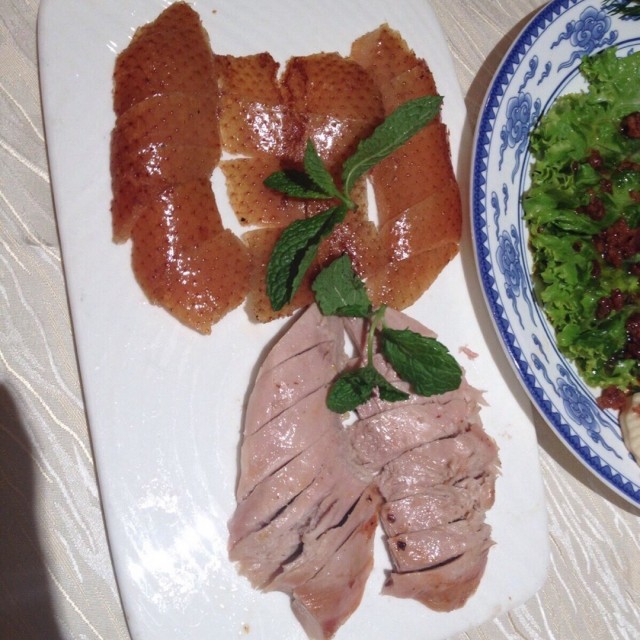 餐厅四季民福烤鸭店南湖中园211号京客隆4楼, 望京整体不错,环境设计简单大方,显得很干净。服务员少,上菜速度太慢了进门就能看见厨师烤鸭子 买鸭子套餐 里面配面皮,甜酱和葱丝。烤鸭,外皮酥脆,鸭肉细嫩多汁味道。卷饼时候放点黄瓜丝配起就更清爽还可以免费加工鸭架,鸭架是椒盐味的,加工出来的成品还挺香的。趁热吃,否则外面就发皮了。