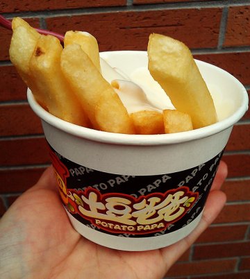 土豆爸爸这家店开在上南路上的三钢里,这里好吃的美食很多,基本都要排队等候。因为在这里等位吃饭所以在等位的间歇跑到这里选上一份好吃的。这里种类还是很多的,选择了车打芝士,付款后稍微等了一会儿就听到服务员在叫自己的号码,动作还是满快的。味道非常不错,土豆松脆,芝士比较浓郁也很香,唯一感觉土豆卖这个价格还是稍微有些小贵的,不过味道是非常不错的。…查看更多
