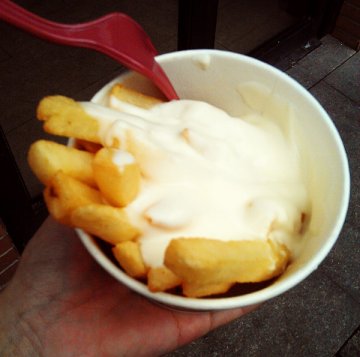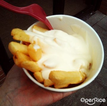 转营薯条的小店,门面就和奶茶铺一样小小的,生意倒还可以,里面做的其实就是一种薯条,不过有各种酱料可以选择意式肉酱,有甜甜的番茄酱和肉糜放在一起,感觉薯条就一下子变成了荤菜了,味道倒是搭配得不错,酥爽的薯条和肉酱一起更显入味车打芝士,芝士味很浓郁,虽然没有意式肉酱的那么多肉酱,但是热热的芝士口感还是很不错的,如果喜欢芝士的话,可以选这个…查看更多