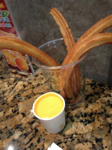 吃好晚饭以后在虹口龙之梦下面寻找好吃的东西,经过这家圣吉诺的时候看到招牌上面写说是西班牙传统的小吃旋乐滋,看看价格也不是很贵,所以就选了芝士旋乐滋,一份里面貌似有六七根旋乐滋,还有一小杯的芝士酱,旋乐滋的口味很酥松而且也很脆香,配了口味浓厚的芝士酱之后捏有一番风味,偶尔尝试新鲜的食物的感觉赞一个。…查看更多
