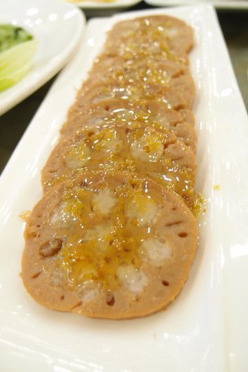 塔里木河是基本上每年都会来一次的好地方,其实以往东园路是一条食街,与乐园路、八卦一路及燕南路等齐名,但自从地下鐡通车之后,人流反而急剧下降,曾有一段时间只余下满庭芳、缪氏川菜及塔里木河等好几间较具实力的食肆,上年初如果从满庭芳那边路口进入,便会发觉乌灯黑火,就连街灯也欠奉;近月所见,已经在路边有宵夜档出现,大概是已经渡过了这个寒冬。今次深圳团只是带几位好友逛逛,没半点压力,而较早前已经预订了舞台前的大台,方便欣赏七时半开始的民族歌舞表演。翻开菜单,由牛头皮至整只烤全羊都有提供,只不过要订全羊的话,麻烦当天早上,来个电话预留。六位吃全羊是不可能的,唯有尽量多点几款吧!毕竟羊肉都是比较重口味的肉类,八宝茶 ($10X6)用上红枣、枸杞子、花旗参、陈皮、莲子心、甘草、杭白菊及冰糖,都是些清热明目,降虚火,入口清甜。餐前先来这个红豆核桃仁 ($38) ,加入西芹去清炒,色彩搭配亮丽,核桃仁不觉有苦涩味,一边当小食吃,一边看著舞台上的表演,很写意的一刻。而凉拌牛头肉 ($48)看起来及口感都有鱼胶的感觉,咬落烟韧、弹牙,其实本身无味道,只是依靠酱汁来提味,几特别的一道菜。原以是苏杭才会出现的桂花莲藕 ($22) ,想不到就连漠北菜中亦会出现,当然口味没那么正宗,但反而酱汁较轻,软绵甜糯,不错。其实面酱黄瓜 ($12)只是简单的切开小黄瓜,用海鲜酱蘸点,清脆爽口,有点沙律的感觉。回民椒麻鸡 ($38)选的是土鸡,以手撕鸡方式处理,满是麻香,而且带少许花椒辣,不过鸡味并未有给盖过,很讨好的一道菜。这个酱香羊肝 ($22) ,除了贪得意之外,实在想不到有什么理由要吃,虽然是薄薄一片,但死实实犹如嚼爉,一个差字。金牌烤羊排 ($158)果真名不虚传,表面扑满了孜然粉,十分香口,特别是油脂位油香四溢,肥美丰腴,膻香随著肉香,柔韧有嚼口,可说是整晚最好的一道。沙漠羊排 ($58)选用腩排的位置,肉质比较厚实,油脂位偏重,所以用𫗵饼置底,目的是吸油及令饼底更惹味。原先想一人一只的香酥小羊腿 ($38X2) ,谁不知一出口已给食友压下去,但从菜单睇又十分吸引,说什么总要来一两个顶顶瘾吧?果然没有令人失望,外层松化酥香,而肉质依然嫩滑,不过有点油腻。相比起之前的一次,这个老火羊杂汤 ($78) 似乎少了阵极强烈的膻味,没有了直冲头顶的感觉,但比起一般羊肉汤始终较浓郁,不怕膻的朋友值得一试。毕竟重口味的小菜太多,来一碟清炒笋丝 ($22) 去去油腻感,上台时还在冒烟,食落清甜无渣。石榴汁 ($38)自己没点,虽然要近四十蚊一杯,但看见门前的榨汁机,的确是即榨,而且一次要用上至少四个,算来又颇合理。始终肉类太多,羊肉串 ($6X6)只好一人一串吊吊瘾,其实最吸引的是中间位置串上的羊脂,才是精华所在,肉香都给引出来,油份在口腔内萦绕,将膻香带至每一角落,赞。现场有歌舞团表演,最欣赏其中一位六十多岁的老人家,敲鼓时指掌翻飞,缓急有致,脸上流露出极为享受的样子,真的乐在其中,虽然不明白歌词的意思,但却散发出浓烈的大漠风情,可说是双重享受。除了八宝茶,再加可乐 ($8X4)及王老吉 ($10X2) ,埋单不到八百,人均都是人民币120左右,平宜得令人发笑,加上有民族歌舞表演,够化算了吧?所以有时贵并不一定好,在深圳还是要懂得门路,去找一些价格合理的食肆。