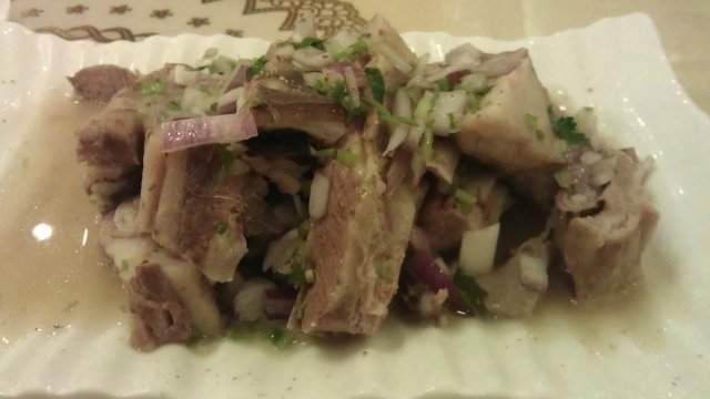 大漠風情畫 oliphi等级32013-03-2284 浏览 关注 塔里木河是基本上每年都會來一次的好地方,其實以往東園路是一條食街,與樂園路、八卦一路及燕南路等齊名,但自從地下鐡通車之後,人流反而急劇下降,曾有一段時間只餘下滿庭芳、繆氏川菜及塔里木河等好幾間較具實力的食肆,上年初如果從滿庭芳那邊路口進入,便會發覺烏燈黑火,就連街燈也欠奉;近月所見,已經在路邊有宵夜檔出現,大概是已經渡過了這個寒冬。今次深圳團只是帶幾位好友逛逛,沒半點壓力,而較早前已經預訂了舞檯前的大檯,方便欣賞七時半開始的民族歌舞表演。翻開菜單,由牛頭皮至整隻烤全羊都有提供,只不過要訂全羊的話,麻煩當天早上,來個電話預留。六位吃全羊是不可能的,唯有儘量多點幾款吧!畢竟羊肉都是比較重口味的肉類,八寶茶 ($10X6)用上紅棗、枸杞子、花旗參、陳皮、蓮子心、甘草、杭白菊及冰糖,都是些清熱明目,降虛火,入口清甜。餐前先來這個紅豆核桃仁 ($38) ,加入西芹去清炒,色彩搭配亮麗,核桃仁不覺有苦澀味,一邊當小食吃,一邊看著舞台上的表演,很寫意的一刻。而涼拌牛頭肉 ($48)看起來及口感都有魚膠的感覺,咬落煙韌、彈牙,其實本身無味道,只是依靠醬汁來提味,幾特別的一道菜。原以是蘇杭才會出現的桂花蓮藕 ($22) ,想不到就連漠北菜中亦會出現,當然口味沒那麼正宗,但反而醬汁較輕,軟綿甜糯,不錯。其實面醬黃瓜 ($12)只是簡單的切開小黃瓜,用海鮮醬蘸點,清脆爽口,有點沙律的感覺。回民椒麻雞 ($38)選的是土雞,以手撕雞方式處理,滿是麻香,而且帶少許花椒辣,不過雞味並未有給蓋過,很討好的一道菜。這個醬香羊肝 ($22) ,除了貪得意之外,實在想不到有什麼理由要吃,雖然是薄薄一片,但死實實猶如嚼爉,一個差字。金牌烤羊排 ($158)果真名不虛傳,表面撲滿了孜然粉,十分香口,特別是油脂位油香四溢,肥美豐腴,羶香隨著肉香,柔韌有嚼口,可說是整晚最好的一道。沙漠羊排 ($58)選用腩排的位置,肉質比較厚實,油脂位偏重,所以用饟餅置底,目的是吸油及令餅底更惹味。原先想一人一隻的香酥小羊腿 ($38X2) ,誰不知一出口已給食友壓下去,但從菜單睇又十分吸引,說什麼總要來一兩個頂頂癮吧?果然沒有令人失望,外層鬆化酥香,而肉質依然嫩滑,不過有點油膩。相比起之前的一次,這個老火羊雜湯 ($78) 似乎少了陣極強烈的羶味,沒有了直沖頭頂的感覺,但比起一般羊肉湯始終較濃郁,不怕羶的朋友值得一試。畢竟重口味的小菜太多,來一碟清炒筍絲 ($22) 去去油膩感,上檯時還在冒煙,食落清甜無渣。石榴汁 ($38)自己沒點,雖然要近四十蚊一杯,但看見門前的榨汁機,的確是即榨,而且一次要用上至少四個,算來又頗合理。始終肉類太多,羊肉串 ($6X6)只好一人一串吊吊癮,其實最吸引的是中間位置串上的羊脂,才是精華所在,肉香都給引出來,油份在口腔內縈繞,將羶香帶至每一角落,讚。現場有歌舞團表演,最欣賞其中一位六十多歲的老人家,敲鼓時指掌翻飛,緩急有緻,臉上流露出極為享受的樣子,真的樂在其中,雖然不明白歌詞的意思,但卻散發出濃烈的大漠風情,可說是雙重享受。除了八寶茶,再加可樂 ($8X4)及王老吉 ($10X2) ,埋單不到八百,人均都是人民幣120左右,平宜得令人發笑,加上有民族歌舞表演,夠化算了吧?所以有時貴並不一定好,在深圳還是要懂得門路,去找一些價格合理的食肆。…查看更多+ 8以上食记乃用户个人意见 , 并不代表OpenRice之观点。赞好分享大漠風情畫 塔里木河大酒店 https://s.openrice.com/KtLT0W0ycA200检举 SevillaDusk 哈哈,这家味道不错,但是已经是大大改良,不算是最正宗的新疆风味。东园路大小食肆林立,可多多发掘呢~~2013-06-19 回应 oliphi :)我想跟妳四處跑找好吃的~~2013-06-23 回应 SevillaDusk 是说跟我吗?2013-06-25 张贴 评分4味道4环境4服务4卫生4抵食推介美食回民椒麻雞¥38沙漠羊排¥58羊肉串¥6金牌烤羊排¥158香酥小羊腿¥38石榴汁¥38人均消费¥130 (晚餐)