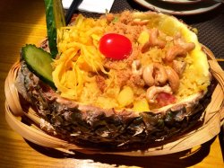 2014开工饭 小妞一只等级42014-02-0328 浏览 关注 2014年02月03日(周一)2014年的开工菜 临时决定的这家泰国料理 到店的时候居然很多位置都是空的 可能是大过年的关系 选择泰式料理的人比较少吧 【金钱虾饼】18元一个 88元一份5个 其实比较下来价格差不多 虾饼上桌的时候是滚烫的 只是造型不怎么灵 感觉大小厚薄程度不一 蘸的酱汁也非常另类 不是一般常见的泰式酸辣酱 而是清色的水 味道倒是酸酸甜甜的 虾饼本身口感没有那么的Q弹也因为他不够厚的关系 总觉得里面有豆腐的口感 也有可能是自己的错觉 不是那么好吃【黄咖喱牛腩】蛮小的一份 亮点是容器 很不错的造型 上桌的时候能明显看到椰浆 拌匀之后很香很奶的口感 牛腩本身不多也就算了 还有很多皮啊 油的地方 基本上整个菜就靠这个算是很入味的咖喱酱撑场面了【菠萝海鲜炒饭】非常失败的炒饭 除了样貌是对的以外 口感真心不咋地 米饭居然有些地方还是冷的 明显没有均匀受热就放进菠萝里了 上面撒了少许的肉松和腰果 腰果居然还不是那种非常松脆的 米饭本身味道很淡 配了咖喱酱吃都觉得不好吃 不知道是放了什么调料了 【冬阴功】没有大份的 只能单点 就是小碗的一碗 每份里面有2个虾 虾的中间是去壳的 头部和尾部保留 没有使用鸡腿菇 香料口感很满足 相对来说是今天几个菜里面最好吃的了【白米饭】他们家的白米饭倒是蛮便宜的 只有3元一碗 当然量不是很多 配着咖喱吃很不错个人点评:【口味】一直满想尝试的一家店 结果吃了几道推荐的菜都觉得非常之一般 甚至有觉得不怎么好吃的 反倒是餐前小吃的虾片比较对偶的胃口 一点点的辣 明显的虾味【环境】店面还是蛮大的 最爱的肯定就是榻榻米式的座位啦 不用盘腿 坐起来还是蛮舒服的 灯光很昏暗 没有泰廊之类的那么有异域风味 厕所非常臭【服务】服务员明显非常懒散 不管是点单 买单 加水 都是叫了N多遍的 还爱理不理 服务真心差【人均】价格不便宜 消费清单:306元●金钱虾饼:88元(5个)●黄咖喱牛腩:88元●菠萝海鲜炒饭:68元●冬阴功:28元/例*2=56元●白米饭:3元/碗*2=6元…查看更多+ 3以上食记乃用户个人意见 , 并不代表OpenRice之观点。赞好分享2014开工饭 塔顶泰国时尚餐厅 https://s.openrice.com/KtLT100cOS900检举 张贴 评分3味道3环境2服务3卫生3抵食推介美食虾片用餐日期2014-02-03人均消费¥102 (午餐)
