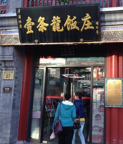 壹条龙饭庄 前门大街27号, 西城区。一家传统老北京风味的餐厅,有很多特色炒菜,也有铜火锅,感觉很不错,我们吃的潮菜什么的,感觉速度很快哦,那个炒红果很好吃呢,完整地山楂果那种,口味酸甜,而且外面很多的糖浆,很浓稠,开胃而且去油腻,很不错哦。查看更多