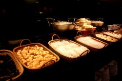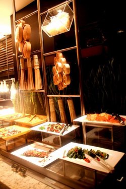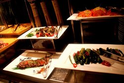有段时间盯着自助餐吃,这家是因为有朋友送了买一送一券,就和胖生去吃了。地方挺大的,位置设置得也很合理,但是就是因为地方大,又有柱子,经常看不到你在举手,服务就有些差强人意了。收盘子不是很快,估计也看大不到了,有什么问题想问问服务员,要么找不到人,要么不能快速完成你的要求。就吃的东西而言,鱼生还是很新鲜的,尤其三文鱼。烧烤的话,牛排就已经像牛肉了。总体东西的种类不是很多,水果感觉不新鲜,而且不是切片的,基本就是整个梨,整个橙子的放在那里。补货也不是很及时。去过别的五星级酒店的自助餐厅,要比这个好很多。…查看更多