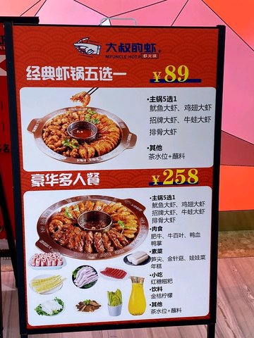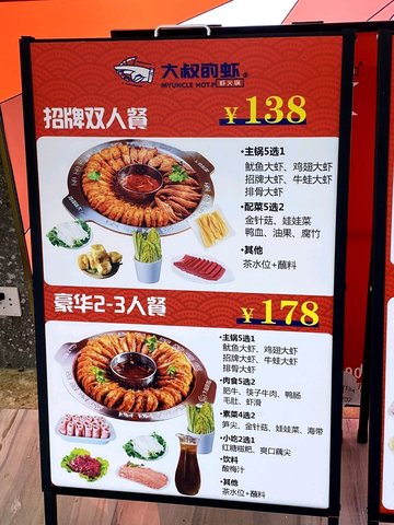 招牌大虾 / 鸡翅大虾 / 鱿鱼大虾 / 雪花肥牛 / 牛蛙大虾 / 排骨大虾