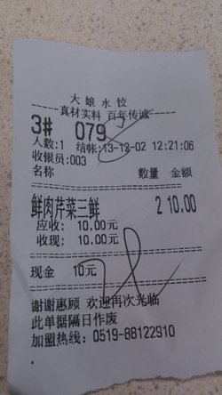 点了鲜肉芹菜三鲜饺子,5元一两,6个,买了2两。水饺皮是速冻的感觉,不是现擀的,所以有些粘牙,没有嚼劲,皮子蛮薄的。内馅不是特别多,有点偏少。内陷的调味还是很好的,咸淡正合适,荤素搭配合理,肉质新鲜,没有肉腥味。