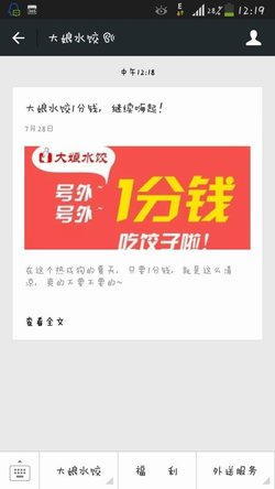 大娘水饺微信公众号推送的1分钱水饺活动,手残点错了一下就买好了...是有期限的,只好在规定时间之前兑换了。特地来这边吃的,交通倒是很方便,八号线出来往亚龙广场口走过来就看到大娘水饺的招牌了。店面挺大的,饭点吃的人还蛮多。点餐的时候叫店长出来的,店长说‘我们这里没信号,不好兑换,这一次你不知道情况,所以先给你兑换了’,服务还算可以。昨天刚好点痣据说不能吃姜,水饺里肯定有姜的,就只兑换了一份水饺。
