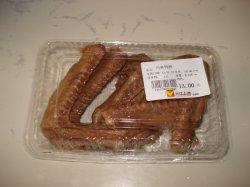 经过大江上选,想进去买点熟食,晚饭加加菜,方便些。正好他们的川府鸭膀特价,就秤了一盒。 虽说被冠以川府之名,但是不是怎么特别辣。鸭膀很入味,肉是那种紧实型的,很香的说。还没了一些他们速冻的鸡翅膀什么的,备着,需要加菜什么的,就不急了。