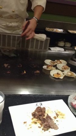 朋友生日,一起来这里聚餐与大菊铁板烧,仅1字之差但价格差异较大吃完后,从味道、品种、价位、服务多重比较大菊铁板烧还是好点吧 对于我这种收入不高的人群这里的扇贝不大,比较鲜草虾个头还比较大,也有鲜甜感觉这2个菜是我的最爱,我推荐其他没有很深刻印象哦