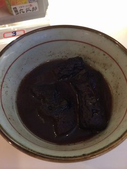 特地为了黑关东煮去的哦,里面关东煮品种很多,也不贵,基本就是3元,6元这样一样,虽然说是有黑蒜,但是蒜味很少,汤汁非常鲜美,但是有点太甜了,要了萝卜,味道全都煮进去了呢,萝卜本身也变得很酥软,还有竹轮,竹轮非常新鲜,萝卜有点太甜了,可能是容易吸味道,竹轮会比较好一点查看更多