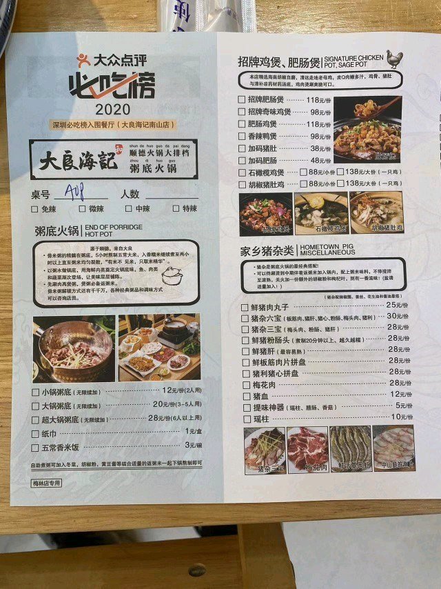 大良海记粥底火锅 (梅育路) (深圳) 网址: https://s.openrice.com/KtLS0W01R9N00 地址: 深圳福田区梅林梅育路18-1号铺 电话: +86 13266808080