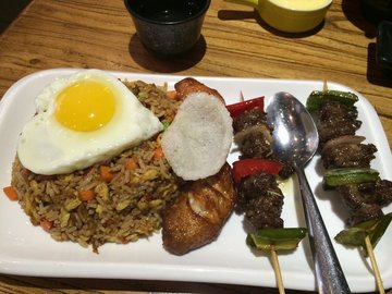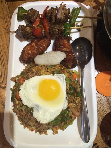 周五,令人振奋的日子SO,工作餐选择了提前high哈哈当然就近在楼下的菱角湖万达广场3楼咯搜索“美团”一番大菊创意料理店27.9元=39.9元爽爆哒毫不犹豫,与同事来到了这里看看这是我点的印尼炒饭与香蕉汁美死我了肉、蛋、鸡翅、虾一应俱全,分量好足重在全部现炒现卖,口感超级bang 鸡翅好嫩的说牛肉串还有 孜然烧烤味道哦这个香蕉汁常温的,鲜榨的 口感很柔软这样一个随心搭 无比满足还是这个美团中的午餐团购券划来呀2个人团2张,无比满足