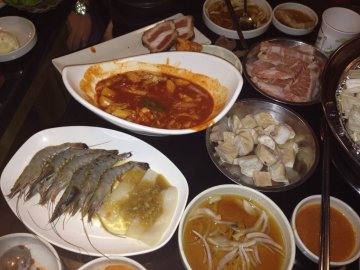 有段时间很迷大长今的,所以一切有关大长今的东东都很感兴趣。自从看了大长今,对于韩国的文化、美食都蛮感兴趣的,虽然木有还木有机会去韩国旅游,但是上海的各种韩国料理店也去了不少。赶脚韩国的美食大同小异,不算是很丰盛,但是都属于比较入味的。漕宝路上的这家大长金韩国家庭料理蛮大的,干净整洁是关键,环境也没什么特色。韩国的石锅拌饭和炒年糕绝对要点的,做的都不难吃。我觉得他们家的海鲜葱饼很好吃,看上去有点披萨的样子,上面有虾仁什么的,很鲜美,配的酱料蛮好吃的,甜甜的。还有大长今紫菜包饭,很普通的样子,但是里面的饭和料正好,外面的紫菜脆脆的,口感不错。韩国料理店服务都挺好的,吃下来人均才50都不到,绝对划算哦…查看更多