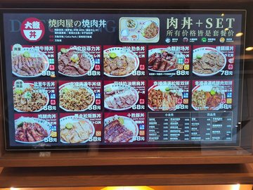 幸福满满牛丼烧 / 温泉蛋 / 究极菲力丼 / 牛肋条饭 / 黄瓜 / 蒜味奶油嫩肩mini丼