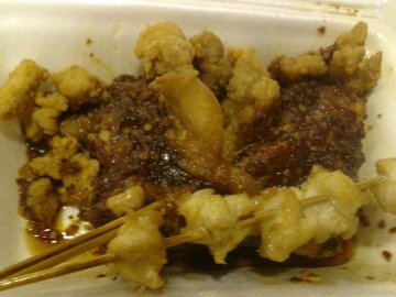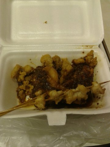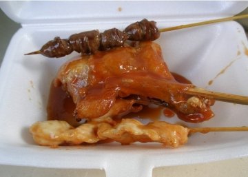 路过的时候无意中看到的~!看到买的人还蛮多的就,就凑热闹跑过去,买了鸡腿、年糕、金针菇、作为下午茶吃起来超级满足啊,炸过的鸡腿然后再涂点酱汁,吃起来外面脆脆的里面的鸡肉很嫩,年糕吃起来蛮糯的,金针菇的油水吸得很足吃起来有点你,鸡腿非常的好吃!!以后要是路过还会买的,价格也还好,人均的十来块吧·~地段不错~…查看更多