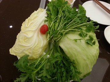 天笑羊蝎子学院南路40-1号, 海淀区。吃完了很多肉的羊蝎子之后,一定要来一个蔬菜拼盘呢,要不然会很油腻的,不太好消化,这个蔬菜拼盘分大小的,我们4个人要了一个小的,也是足够了的呢,造型很好看,生菜也很新鲜爽脆,味道不错哦。