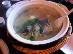 精品鱼头汤和土鸡不错,精品的168元,普通得138元,绝对应该点精品的,锅大,里面东西也多不少,很大一个鱼头,里面还有有虾,蟹,粉皮,豆腐,汤超鲜美的,绝对3碗也不够的!还喜欢土鸡,鸡肉很紧实的,沾的料味道也不错,美味!还有酒香草头也很不错!白切羊肉味道不错,就是量太少,服务还行,环境不错,很古色古香的!查看更多