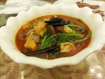 太阳城这个地方我早就想来了,无奈的是离我家实在是距离不近于是一直没有如愿~所幸的是中了大众点评的V聚会,才让我体验了一次高大上。这个地方按照点评网给的路线走是没差的,就是环路我找了老半天才找到,不过好在到的时候没晚,从门脸来看这家店并不是很豪华的样子,但是进去之后感觉出不一样的感觉了,很大气~尤其是我们试吃的包房,很适合家族聚会。下面我来说说菜干豆腐葱花鸡蛋酱,看到这道菜的时候我震惊了,一直以为这是家粤菜馆子,我大东北气息浓厚的菜都上来了,吓我一跳~后来听说老板转型了?粤菜和东北菜两手抓的即视感~反正这菜我没吃...小叶芹拌腐皮,这个吃了不少,也不知道这个小叶是个甚~反正挺小清新的~多吃蔬菜还是比较好的~麻辣素三拼 ,这个很好吃,有藕片 杏鲍菇和海带,杏鲍菇比较好吃~藕片也不错脆脆的~有些辣,不过可以承受~片皮鸭,虽然知道这玩意儿得就着饼吃,但是我平时就是喜欢光吃鸭子肉~于是吃了好几片~油挺大的~没有什么味道,还是得传统的蘸着酱吃~片鸭的下面都是虾片,刚炸出来的时候比较好吃,脆脆的但是没过一会就软了~基围虾,大爱的基围虾啊,吃了好几个~是白灼的,但是我还是比较喜欢干吃大虾,不过基围虾的个头比较小~生卤虾,扮相非常的好看,可惜的是我不喜生食,就不多评价了。招牌水库炖鱼,招牌菜很大很大个的鱼,鱼肉蘸着汤吃很鲜美。招牌秘制大骨棒,很贴心的给了一次性手套和吸管,大骨棒我的爱啊~但是我不喜欢吃骨髓...我就是一奇葩,这么好的东西我却不喜欢囧~麻辣虾爬子,其实我到没觉得这个很辣,吃着挺好的,就是虾爬子这玩意儿我扒起来忒费劲了!土豆芸豆炖排骨,咱东北经常吃的菜,所以没什么好评论的了。招牌秘制老式麻辣烫,这个其实我很喜欢,但是转到我这的时候基本上没啥了...小吃嘛人人爱很想吃虾饺呢,但是被告知只有晚上的时候才给做,有些失望~不过有酸菜蒸饺,虽然我不喜欢吃酸菜馅的...还是好想吃虾饺啊~据说这是一家开了二十年的老店了,在这个餐饮业岌岌可危的时代中还能屹立不倒太阳城还是很有实力的,以前的高大上现在也出了亲民的团购,改日想来尝尝晚茶,没吃到虾饺不甘心的即视感~…查看更多