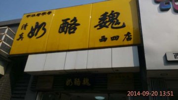 奶酪魏在西四北大街148号。奶酪魏店特别小,经常 有挺多人排队买他家的东西。他家的奶酪还是挺好吃的,挺香的,而且 也特别嫩,很柔软的感觉。他家的奶酪有原味的,也有草莓味的,蓝莓味的等,都还挺不错的。他家 的双皮奶也挺好吃的,挺香软的,奶皮挺Q的,很不错。
