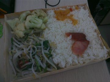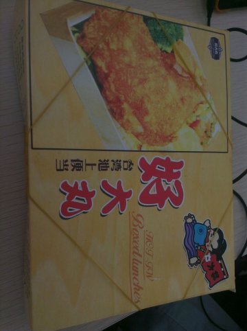 公司附近的这家好大丸其实开了很久,不过最近他家才推出了便当服务,而且提供外送服务,所以我们办公室的外卖有很多次是叫的好大丸。这次我点了咖喱牛肉便当,送了的便当,装在好像是纸盒子的里面,其实在盒子里面,是有着一层类似是竹片的隔层,保证了米饭和菜不会透湿盒子。我的咖喱牛肉便当,咖喱牛肉和米饭是分开的,店里另外给了一个小碗装咖喱牛肉,自己可以讲咖喱浇到米饭上,便当的味道觉得马马虎虎,但是胜在米饭和菜的量都不少,绝对可以吃饱。另外还有送一份例汤,味道也普通。