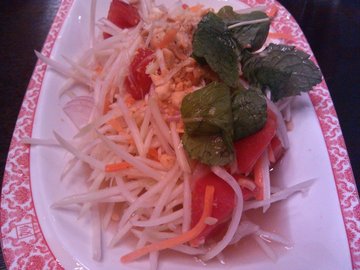 这家店和几个朋友来的,去的朝阳大悦城店,6号线到青年路,在7楼。店内环境偏暗,不过还蛮有格调的,很整洁,服务员态度整体感觉还不错。我们点了火车头、西贡虾卷、榴莲饭、青木瓜沙拉、煎鱼、虾饼、越式牛肉、越南春卷、咖喱鸡、虾酱通心菜、珍珠丸、椰青和烤鸡肉。椰青,就是整个的椰子,朋友给每个人都点了一个,倒是原汁原味的,很好喝,还有清淡的甜甜的味道。青木瓜沙拉,酸爽可口,青木瓜是脆脆的,里面还放了西红柿和花生米。榴莲饭,里面是椰奶、榴莲肉和糯米做的,榴莲肉糯糯的挺好吃的,糯米有黏性,椰奶的味道很清香。火车头,配了柠檬和菜丝,量挺大的,里面有牛腩、牛肉丸、菜丝、河粉等等,河粉很劲道,牛肉丸很Q弹,牛腩片儿挺嫩的,汤头好喝,挤上点儿柠檬汁提味。西贡虾卷,有些薄荷的味道,挺清凉的,里面有蔬菜和虾,虾很鲜美,每个卷有半只,外层糯米皮糯糯的,蘸着酱汁吃。虾饼,配了泡菜,酸酸的很开胃、很爽口,虾饼炸的外脆里嫩,里面满满的虾肉,挺实在的。越南春卷,这个是炸的,蘸着酸酸的酱吃,春卷里面有胡萝卜丝、香菇丝什么的,挺香的。咖喱鸡,咖喱味儿很香,辣度也蛮好,据说没有泰国那么辣,鸡肉挺嫩的,还有洋葱、土豆和玉米粒。煎鱼,是罗非鱼,下面的汁是酸酸的,鱼还挺新鲜的,鱼皮煎的脆脆的,鱼肉挺嫩的,就是鱼刺有点多。越式牛肉,牛肉挺嫩的,黑胡椒味道,微辣,非常香。烤鸡肉,我忘记是不是姜黄鸡那道菜了,反正配了面包、沙拉酱、酸甜酱和泡菜丝,泡菜丝很爽口还脆脆的,面包厚片,还是烤的,外脆里软,鸡肉烤的鸡皮脆脆的,鸡肉鲜嫩多汁。虾酱通心菜,挺嫩的,虾酱的味道还不错,比较习惯。珍珠丸,椰奶浇汁糯糯的丸子上,丸子没有馅儿,糯糯的,跟没有馅儿的汤圆一样,上面的椰奶很清香。…Read More