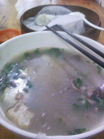 妯娌老鸭粉丝汤 @浦东新区夏碧路89号,买了老鸭粉丝汤和小笼,里面的鸭汤,闻起来老鲜的,吃起来,味道哈好的,闻着也特别的香,鸭肫肝放不少的,还有各种鸡鸭的内脏,感觉吃的蛮饱的。热乎乎的,哈哈。小笼皮薄肉多,咬一口下去,有汤汁的呢,很好吃的。
