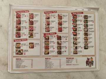 刀鞘五花肉 / 雪花肉 / 调味牛排 / 小菜 / 土豆泥 / 雪花牛肉