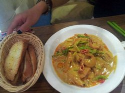 中午和客户在娘惹吃饭,这家店的环境挺不错,中午吃饭的人不会太多也适合两个人谈事情。泰国烧茄子,用泰式甜辣酱烧的,上面还有些小辣椒,茄子切得很大一块,味道也是甜甜,吃多了会觉得有些甜腻,而且油有些重。咖喱虾,虾子、洋葱、青椒等全被咖喱稠稠的酱汁遮盖住了,慢慢吃才发现里面虾子还挺多的,辣椒也是那种肉肉的,虾子咖喱味道特别浓郁,喜欢吃咖喱的不要错过这道菜。烤面包片沾着咖喱酱味道非常奇特,直接吃又觉得偏硬。越南春卷外表和国内的很像,都是米皮包馅子后大火油炸金黄出锅,春卷里面有虾子、木耳还有红萝卜丝,吃起来很酥香里面又清甜。配的酱料也是泰式酸辣酱,沾上酱料也是中和油炸食物的油腻味,吃起来更加清爽开胃。冬阴功汤应该也是每桌必点的吧,这个算是泰国最有特色的美食了,汤头色泽金红味道鲜酸又辛辣,汤里面有番茄、大虾、豆腐,个人喜欢喝这个汤,酸酸辣辣非常开胃,而且这个辣感觉与众不同,鼻头会冒汗但是胃却不难受的那种。大虾没有取过虾线,好在虾子也新鲜,肉质甜紧凑好吃。Read More