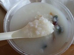 宇宙卷饼可以单买卷饼,也有套餐,套餐里除了卷饼还有一份粥很一份老醋花生,套餐挺实在的,当午饭吃分量正好。粥是皮蛋瘦肉粥,温热浓稠,里面的皮蛋挺多的,花生虽然是老醋花生,但是偏甜,味道还可以。查看更多