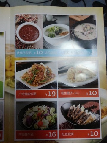 宏状元算粥类铺子里比较干净整洁的了。价位和嘉禾一品健将什么的差不多。这家店的市口还不错,所以饭店也很热闹。不过位置在二层并且没有电梯,台阶还不少,家里有老年人的要考虑一下。因为人多,服务员少,上菜的速度不是一般的慢,不过粥和肉饼的味道还不错。我觉得这里的牛肉饼和香河肉饼一样都很好吃,并很扎实。粥类有甜粥咸粥热粥冰粥,夏天可以吃解暑的冰粥,绿豆又清热解毒,山药红枣的甜粥内容也很丰富,用料很实在。不过最爱还是咸粥,皮蛋瘦肉是最基本款,做的一般,无功无过,鸡茸粥很爱喝,蓬松的鸡肉和绿叶菜,使粥整个呈绿色,好有营养的样子。炒菜的话菜量是真小, 而且油大, 得慎重点菜,现在微信有活动,有特价菜,可以一并尝试。…查看更多