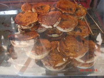 每次来七宝的时候,都必要来这家买几个海棠饼吃吃。没法外带,总觉得带回家冷掉之后,就算回热,米道就是差了那么一点。海棠饼外面有一层厚厚的焦糖浆,里面浓浓的豆沙馅,外皮很有韧劲,咬下去甜甜的口感非常好吃。…查看更多