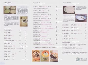 果仁酸奶 / 原味奶酪 / 原味酸奶 / 原味双皮奶 / 宝珠奶茶 / 红豆双皮奶