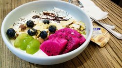 和朋友两人喝下午茶,挑选了宝珠奶酪,人不多,环境也很好,一人点了一份酸奶菜菜A和B套餐,味道还是不错滴,酸奶菜菜A分量还是挺多的,里面有香蕉,芒果,红豆和丸子,材料还是很丰富的,酸奶质地也是比较浓稠的那种,味道杠杠的。查看更多