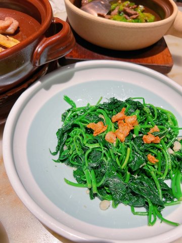 客家酿豆腐 / 土猪肉汤 / 古法手撕盐焗鸡 / 番薯叶 / 豆豉鲮鱼炒油麦菜 / 客家三杯鸭