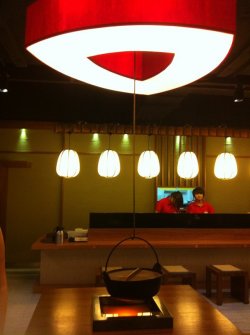 店里的风格都是用木头组成的,,方方正正的,有点昏暗的感觉,桌子更有特色滴,中间架着一口锅,来这边吃饭的人很多,吮指鸡翅+芥末章鱼,鸡翅的味道还是挺不错的,2对鸡翅膀哦,章鱼就一般吧。天妇罗冷乌冬,天妇罗炸的很香脆,这冷面真的很粗啊,很细洁爽口,不错。查看更多