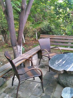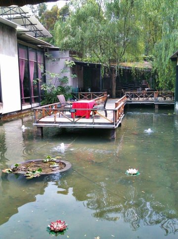 西边的宽庭,有点名气了。朋友的家就住在宽庭的街对面,早就听说这家的环境超级好等等。。。于是在一个周末的午饭后,决定和她在里面喝喝茶。聊聊天。听朋友说,这家以前是一个农家乐,后来慢慢做大了。环境也提高了,于是就变成了一个小型的高档的度假之地,有餐厅们可以举行婚礼,装修很漂亮,尤其是中间有一个小池塘,池塘的中间有小桥。非常适合婚礼中新人的舞台。餐厅的后面有一个很大的茶园,有露天和室内部分室内部分感觉有点潮,物件有点旧了。加上光线不是很好。不是很满意于是选择了户外,户外有小树林,有小亭子,感觉还真不错。不过在小亭子里面喝茶,是要求最低消费的。就有点像露天的包间一样。哈哈。。。于是我们选择另外一个露天的茶座要了一壶普洱,悠闲的喝起来。。。室外的环境真的不错,真心赞一下。还有鸟叫。但是也有蚊子,向服务员提出后,服务员拿来了花露水。。其实我还喜欢蚊香些。于是把花露水往身上倒。。。。。。我变成了及香的人儿。。。不过在室外有一个唯一不好的就是。。。头顶上突然发现了高压电缆。。。。喝茶的时候。。。感觉头顶上发出滋滋的声音。。。总觉得有点恐怖这也是我觉得唯一不是很安逸的地方。。。。。其他都还好…查看更多