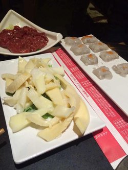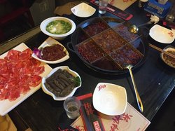 簋街上挺火的一家火锅店,他家的九宫格锅底很受欢迎。但是跟爸妈来吃,考虑他们不吃太辣,所以就点了鸳鸯锅底,45元一锅,其实红油是一样的,别看辣椒不多,但是挺辣的,涮毛肚和涮鸭肠都是不错的,但是鸭肠在白汤里涮就有点腥了。查看更多