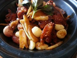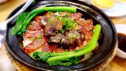 宽饭·绿氧空间很小资,店里到处都是鲜花,桌子上的花很新鲜,店主很是用心。白切鸡颜色很漂亮,鸡皮是黄色的,很薄的一层,吃着清清凉凉的,鸡肉煮的很嫩,挺鲜的,蘸着酱汁味道更是鲜美咸香。这里的煲仔饭量不大,腊味煲仔饭比较经典,看着很油亮,吃着非常香。查看更多