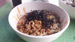 去兰亭碰运气,结果是再次被门口等位的老饕们吓退...转战面馆!环境:坐在路边吃面,满座,人气挺旺~旁边就是高档社区,来往车辆不那么多,所以就餐环境也不会非常糟糕,至少不会边吃边加胡椒面。当然座位舒适就不要去深究了。服务:老板坐在门口收钱,挺霸气,声音洪亮!就是不知道为什么,点完单,老板都要重复很多遍我们点的东西,可能记忆力不那么好,看来像老地方老板娘的那种记忆力还是不多见的。点单:《葱油肉丝拌面》15元肉丝有点像鱼香肉丝的做法,量不少~不那么嫩,但味道极佳,辣味适中,咸甜度刚好。葱油的话,里面有焦香的葱,也有肉丝里的青葱,很棒!就面条来说,一般口感,很实,不难吃也没什么惊艳的口感。《雪菜目鱼面》18元一大碗面,目鱼切了很小片,量不少,雪菜更是铺天盖地。味道是LG喜欢的,说是目鱼很新鲜,味美。和雁荡路上的香港味道信记比起来,他们家真是完胜啊!…查看更多