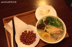 点了招牌鸡汤面,说是秘方炖制的鸡汤,上桌一碗面卖相还ok,面试粗面有点小弯曲,还比较有弹性。汤似乎淡了些,没有鸡汤那种扑鼻的浓香,还放了玉米,我还是喜欢吃甜玉米,这里的玉米有点老。鸡毛菜若干,小时候外婆家的鸡汤真心叫一个赞,整个弄堂都能闻到,加点鸡毛菜,鲜得无语。现在估计鸡的品种也有关系,鸡肉好几块,有点硬,是咸鸡。配的萝卜酸甜的蛮好吃还有花生米。随便吃吃,没有电视里面报道的那么玄乎。查看更多