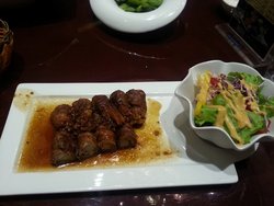 将太无二印象最深的是这里的寿司和刺身,装盘很精致,味道也好。金针肥牛第一次吃,很有弹性,肥牛卷的很紧,酱汁很入味,带一点的甜味,吃着很香,盘子边还有一小份的蔬菜沙拉,吃着很爽口。查看更多