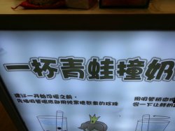 一天晚上逛南京路顺便到这里买了一杯青蛙撞奶,去的时候就只有一个服务生,态度挺好的,要了招牌的小公主青蛙撞奶,是牛奶加黑糖珍珠,牛奶奶香味道十足,吃得出不是粉冲出来的,里面的珍珠口感超好,很有嚼劲,黑糖也很香查看更多