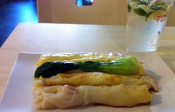 这家店就在东四北大街轿子胡同,店面不大,布置的挺温馨的。他家的肠粉做的很好吃,而且价格便宜,才12元,放了豉汁蒸出来的,皮儿很滑嫩,而且特别薄,中间是牛肉的,很嫩的牛肉。就是蔬菜少了点,就一根油菜而已。